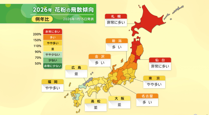 2月22日に岡山県のスギ花粉飛散シーズン開始の一報が入りました(ウェザーニュースより)。三連休明け以降も暖気が継続して北上し、全国的に気温の高い日が続き、春本番の暖かさとなって花粉の飛散量が多くなるおそれがあります。対策がまだの方は始めていきましょう。岡山県は例年並の飛散量となっております。